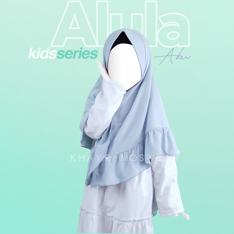 "ALULA KIDS" adalah khimar instan untuk sikecil dengan pad/topi antem (anti tembem) yang ditambah aksen rempel dibagian bawah sehingga mempercantik khimar.